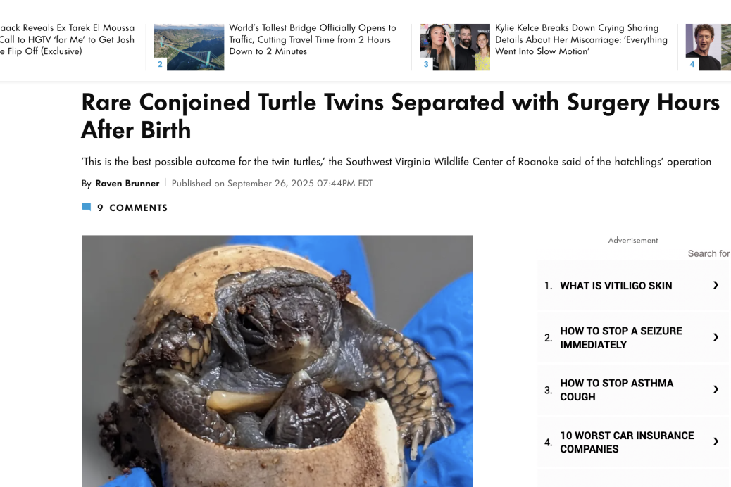 Check out their story here: https://people.com/rare-conjoined-turtle-twins-separated…