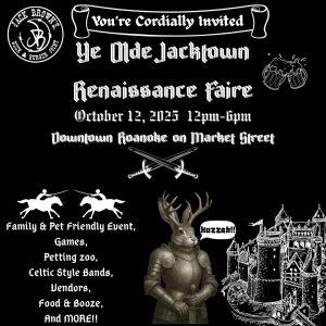 Jack Brown’s Renaissance Fair Festival – Hear Ye, Hear Ye! Join us for a legendary day in the realm of beer, burgers, and medieval mayhem! The King & Queen insist you bring thy friends, thy children, and even thy noble beasts (yes, we’re pet-friendly). It’s family-friendly, rowdy in the right ways, and filled with olde-timey fun. Can’t wait to see you there! Jack Brown’s is turning Market Street in downtown Roanoke into a Renaissance bash with: