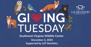 Giving Tuesday, December 2, 2025 – This Giving Tuesday, join us in protecting the wild hearts of Southwest Virginia. Every year, we provide lifesaving care to thousands of injured, orphaned, and sick wild animals from tiny songbirds to formidable Bobcats. Your support helps fund medical treatment, food, and rehabilitation until these animals can return to the wild where they belong.